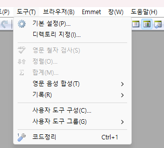 2. 메뉴바의 [도구]에서 기본설정