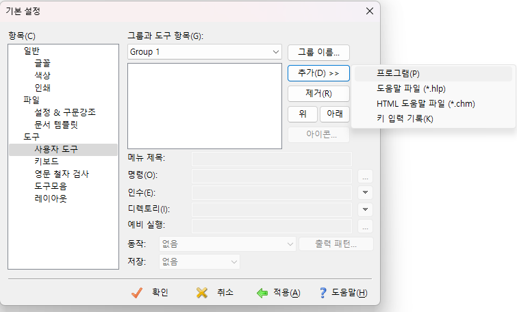 3. [사용자 도구]에서 추가 > 프로그램